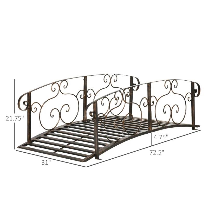 This Outdoor Vintage Bronze Arch 6-ft Garden Bridge with Side-Rails features safe rails and adds charming antique decoration to your backyard stream, creak, fish pond, or walkway. A centerpiece for your landscape, watch as the antique vine motifs and scrollwork shapes draw in eyes, and put the cherry on top of your zen garden. Landscaping your garden doesn't have to be garish, have form, and function with this fantastic footbridge.