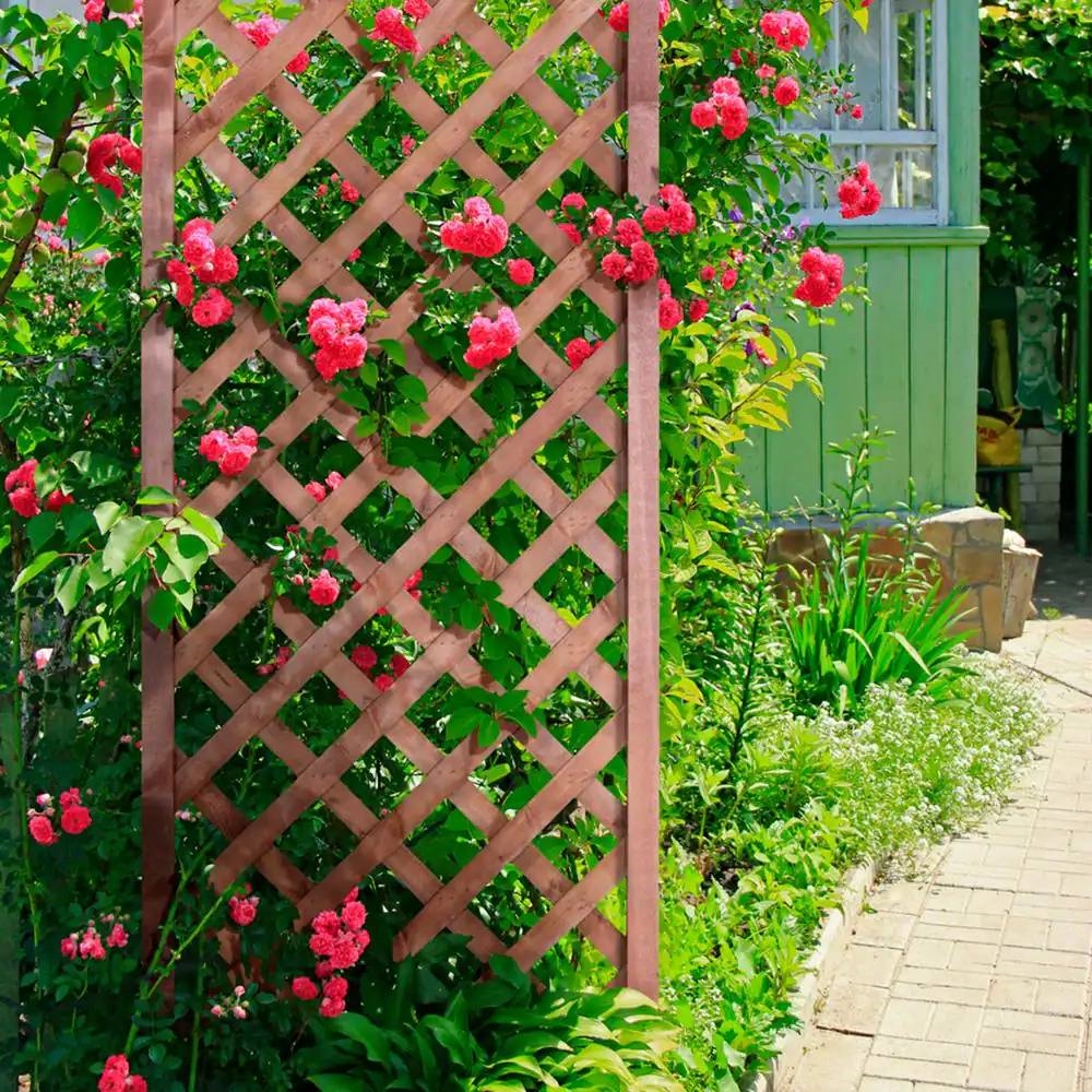 This 6-Foot Outdoor Garden Trellis with Classic Lattice in Brown Pine Wood doubles as both dÈcor and support for climbing vines. The lattice gives vines plenty of vertical growing space. The wood is color-treated to resemble walnut. The size is perfect for a garden bed or large planter. This durable wood trellis arrives pre-assembled and ready to use. Simply push stakes into the soil and loosely wrap vines up the supports.