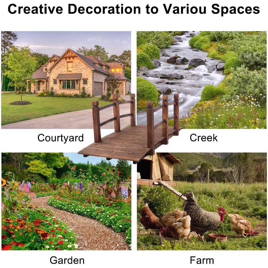 • Decorative Bridge- Carbonized finished fir wood makes it a beautiful and rustic additional walkway to your garden, yard, creek or farm. Dimension: 59"(L) x 28"(W) X 21"(H)