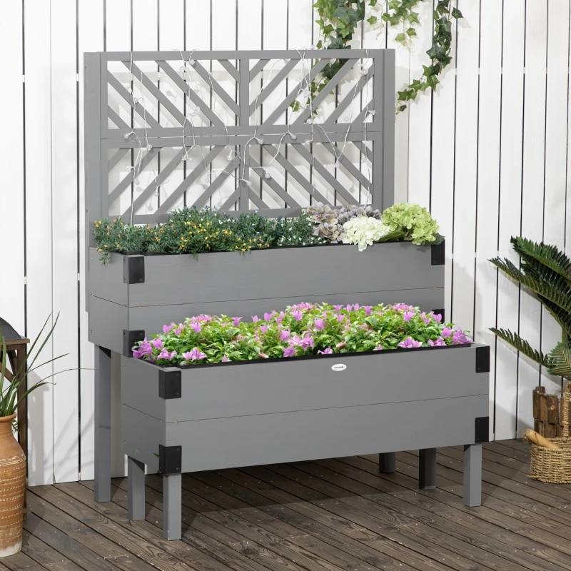 2 Tier Self Draining Grey Wood Raised Garden Bed Planter Box with Trellis 2 Tier Self Draining Grey Wood Raised Garden Bed Planter Box with Trellis 2 Tier Self Draining Grey Wood Raised Garden Bed Planter Box with Trellis 2 Tier Self Draining Grey Wood Raised Garden Bed Planter Box with Trellis 2 Tier Self Draining Grey Wood Raised Garden Bed Planter Box with Trellis