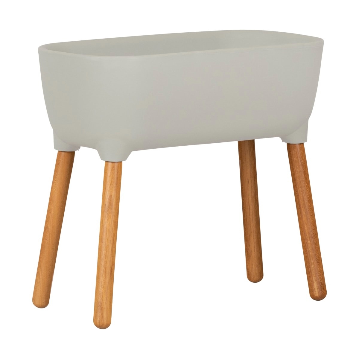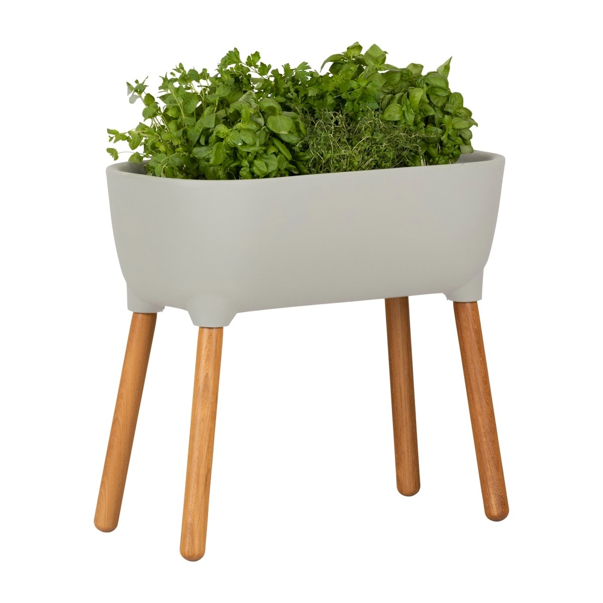 It's time to grow! Our plants are like our babies, and we want them to have a long healthy lifespan! This Grey Scandinavian Elevated Raised Smart Drainage Planter Bed has a built-in irrigation system that keeps your herbs/flowers/plants well nourished and lets excess water drain away automatically. Since the water doesnít flow directly to the ground, you can have this planter inside your home or outdoors. This Grey Scandinavian Elevated Raised Smart Drainage Planter Bed is made of polyethylene resin, which makes it resistant to extreme weather, UV rays, and rust. Also, holds up to 30 liters of soil. The wooden legs on this flowerpot make it just the right height to instantly draw attention. The great thing is you wonít have to bend over to do your gardening and take care of your plants. Spot clean with damp cloth.