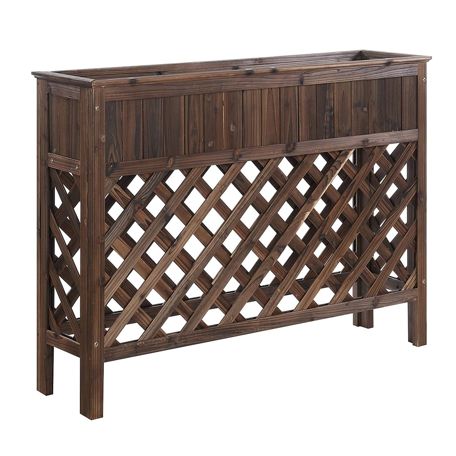 Welcome spring with the Large Raised Patio Planter Weathered Cedar with Drainage Hole L 48" x W 12.5" x 35.5". This raised patio planter is built at a convenient height to prevent kneeling on the ground. It has a weatherproof lattice bottom and drainage holes. Itís the perfect size to place under a window or to divide your outdoor spaces.